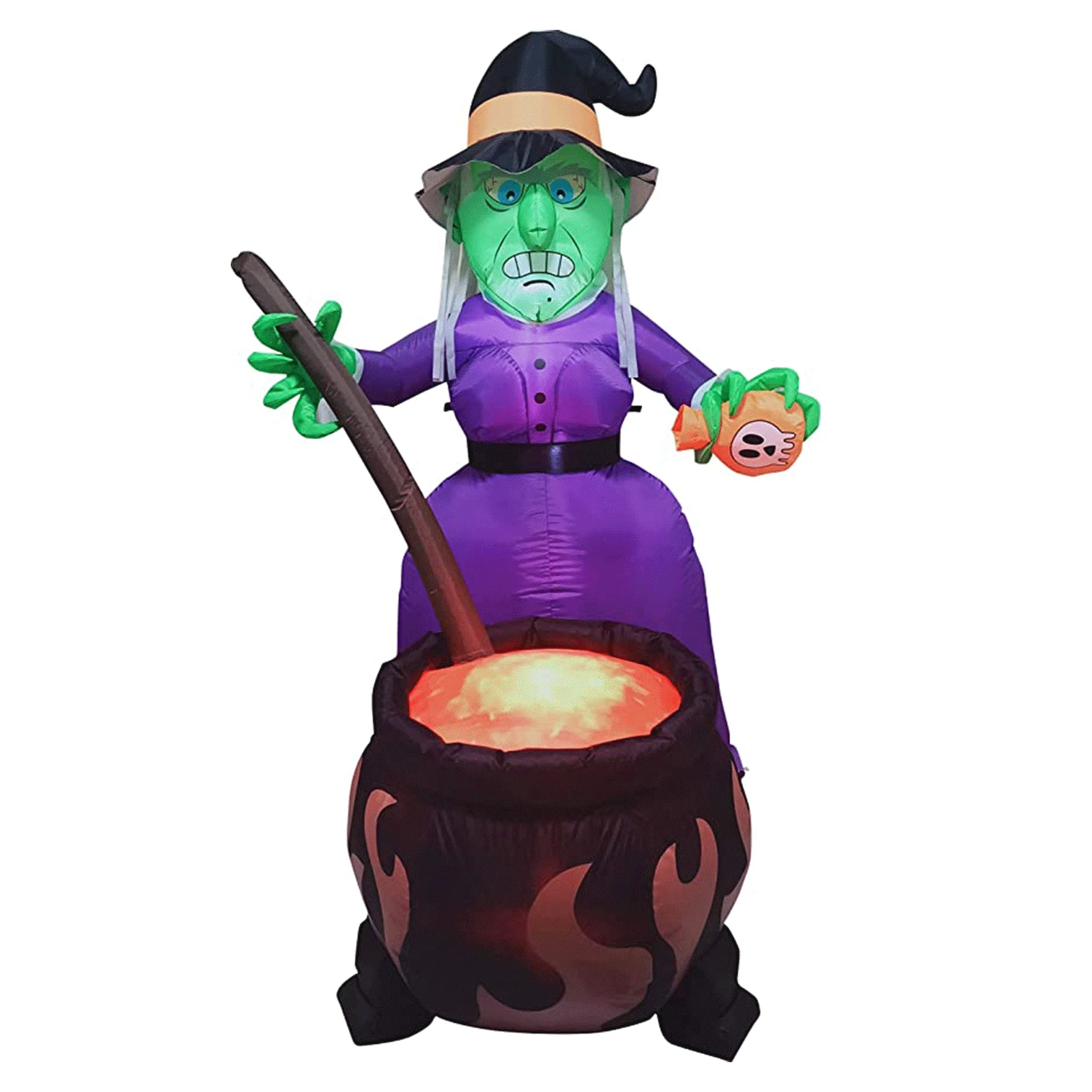 • Halloween Inflatable Witches Cauldron comes with extended cords, ground stakes, fastened ropes, built-in sandbags, and a plug with UL certification.