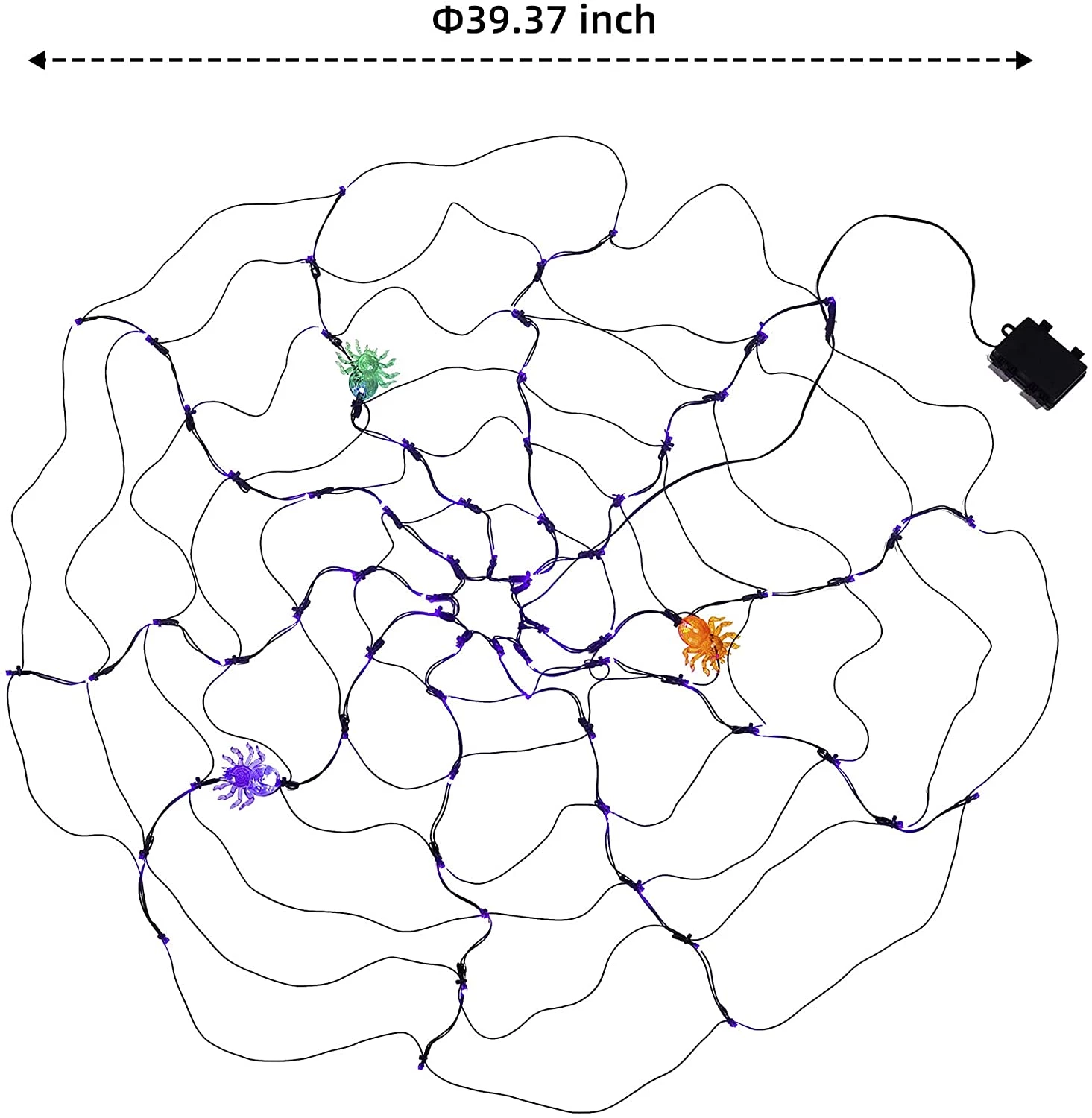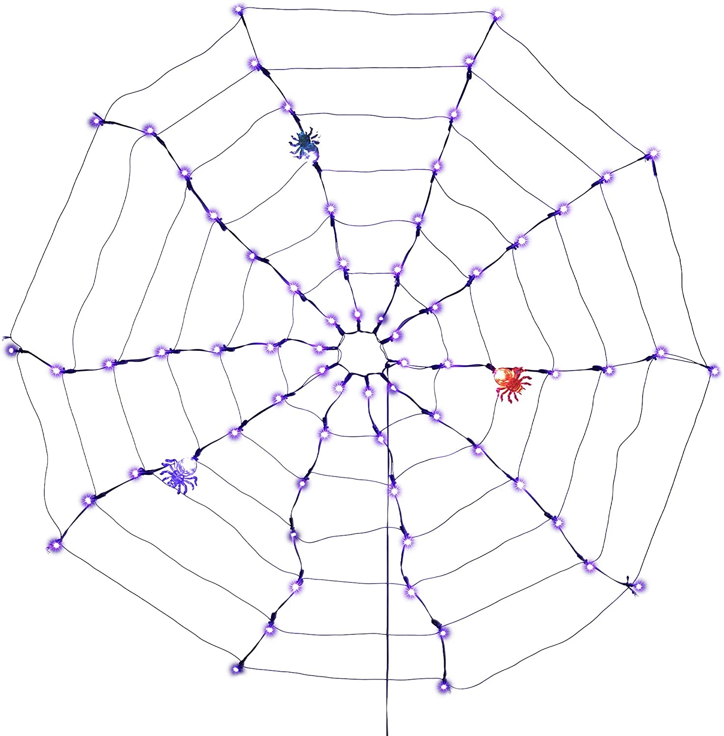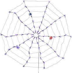 - The illuminated spider web includes 70 long-lasting purple bulbs, which stay cool to the touch. It is big enough and eye-catching.