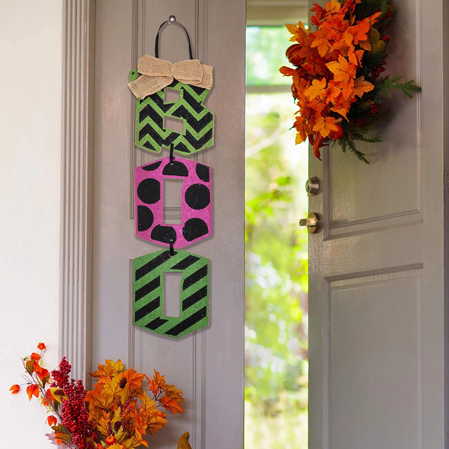 - Step up your Halloween decorating game and spooks your party with this beautiful hanging door sign. This is perfect for your haunted house and to bring your front yard to the next level.