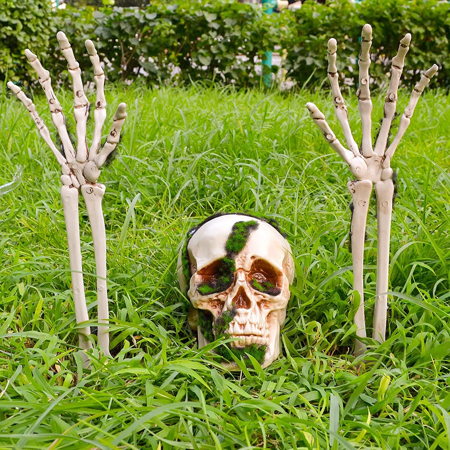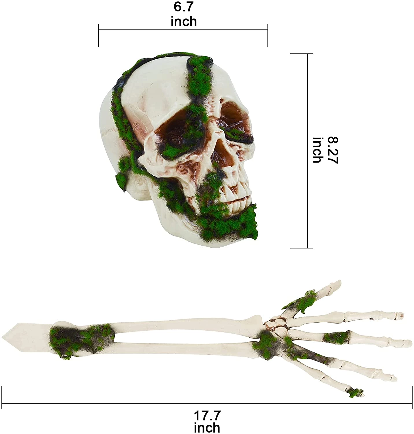 - 💀SUPER VALUE PACK. Our Skeleton Yard Stakes includes 1 pack Skeleton Yard Stakes and 2 arms (17.7″)with Fake Moss