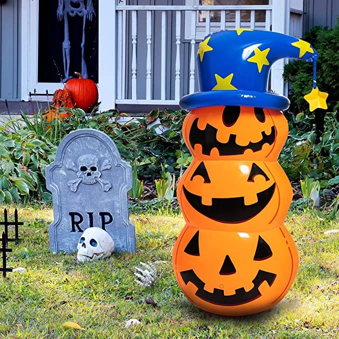 - Our Halloween inflatable decoration is made up of 3 pumpkins which are different sizes with different expressions. The height of the prop is 4.5ft.