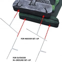 - Our Halloween lightweight tombstones give your yard a deadly appearance, create a creepy and scary atmosphere for any Halloween events, it includes – five 17″ foam graveyard headstones and 12 metal stakes for securing the gravestones into the ground for outdoor use