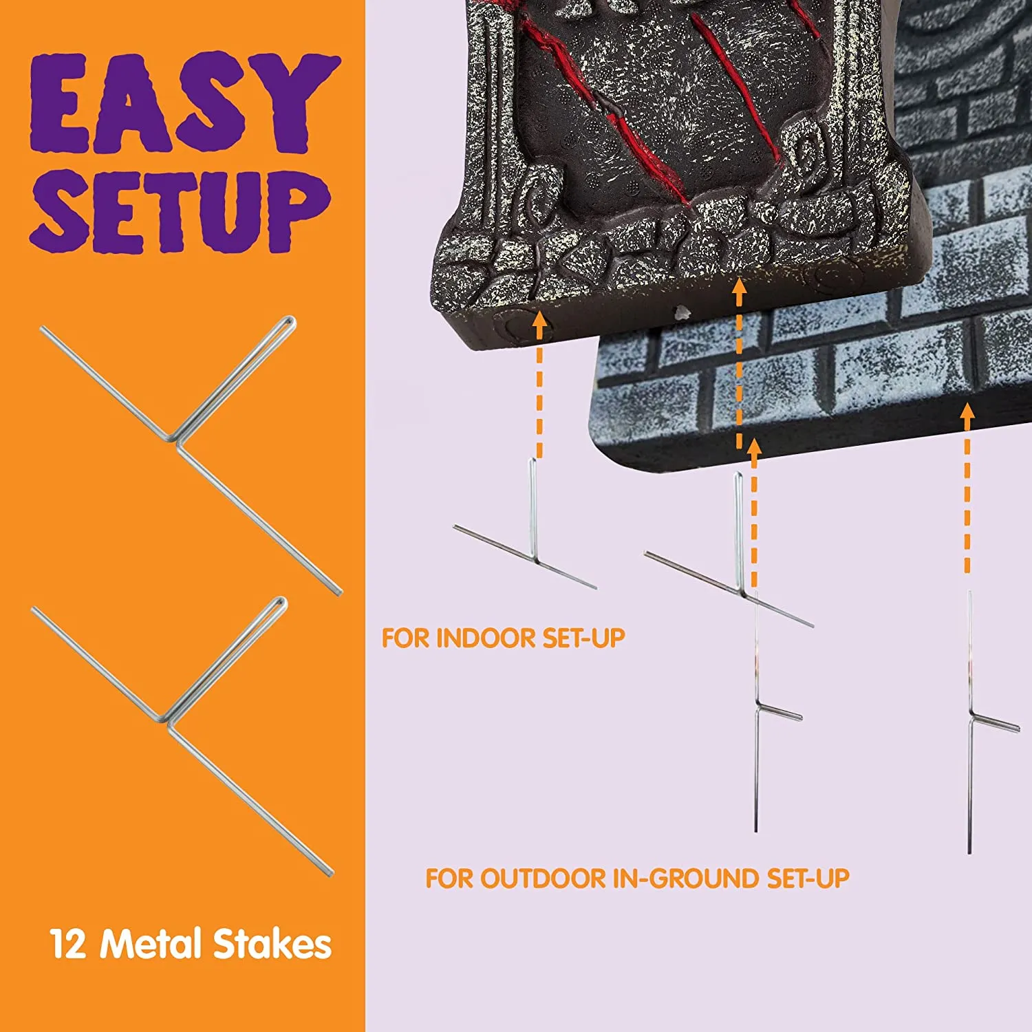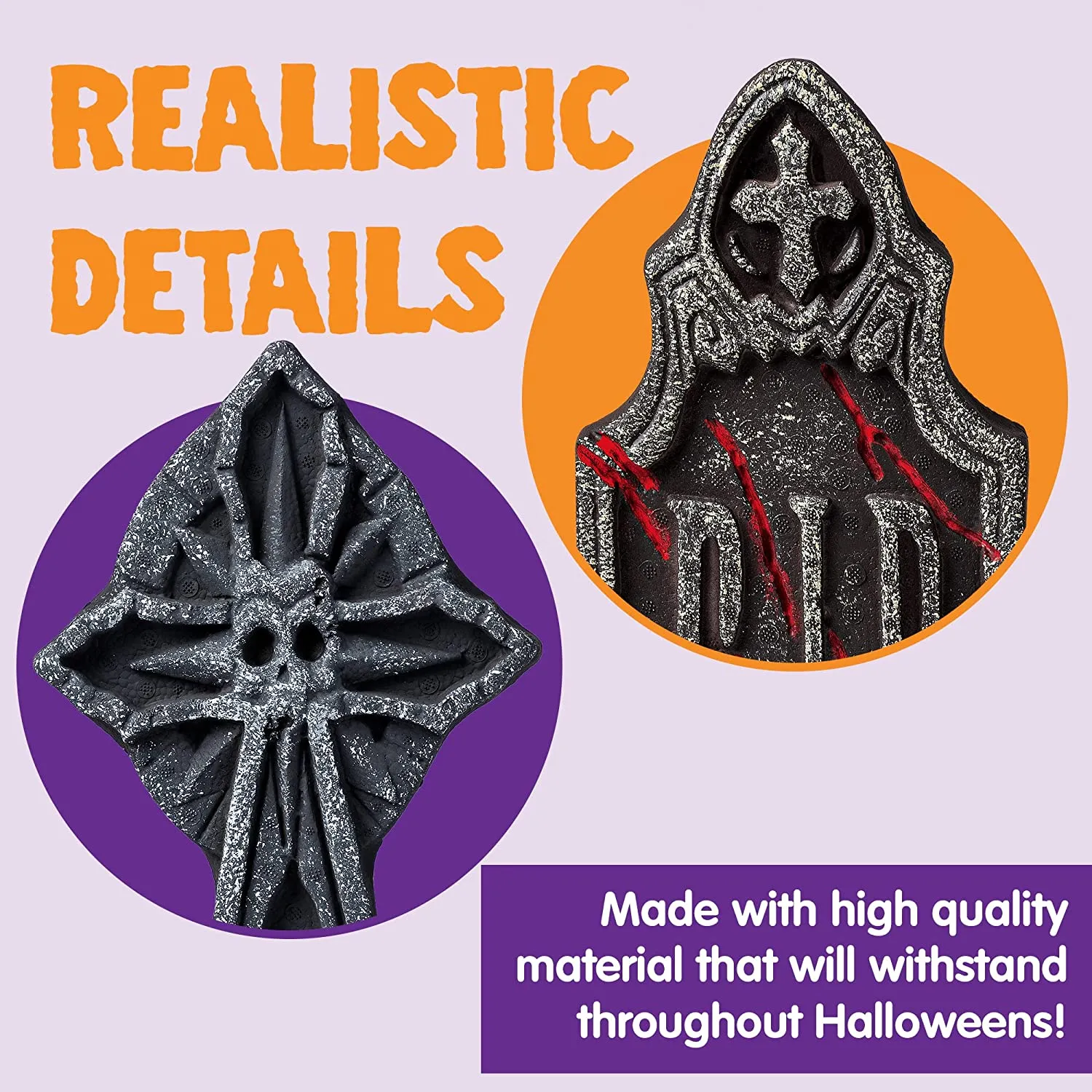 - EASY SET UP: Set up as easy as 1, 2, 3 by pulling out the metal stake, position it vertically, and insert it into the ground for outdoor usage by pushing it through the bottom hole for realistic graveyard tombstones.