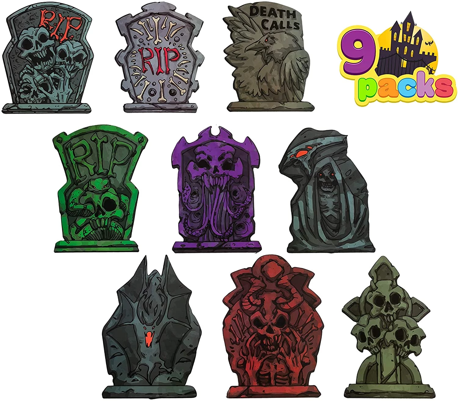 - Our Halloween yard sign is a set of 9 lightweight PVC tombstone decor, which is perfect yard decoration to create a creepy and scary atmosphere for any Halloween events, spooky entertainment, spooky party, haunted houses party and other themes occasions