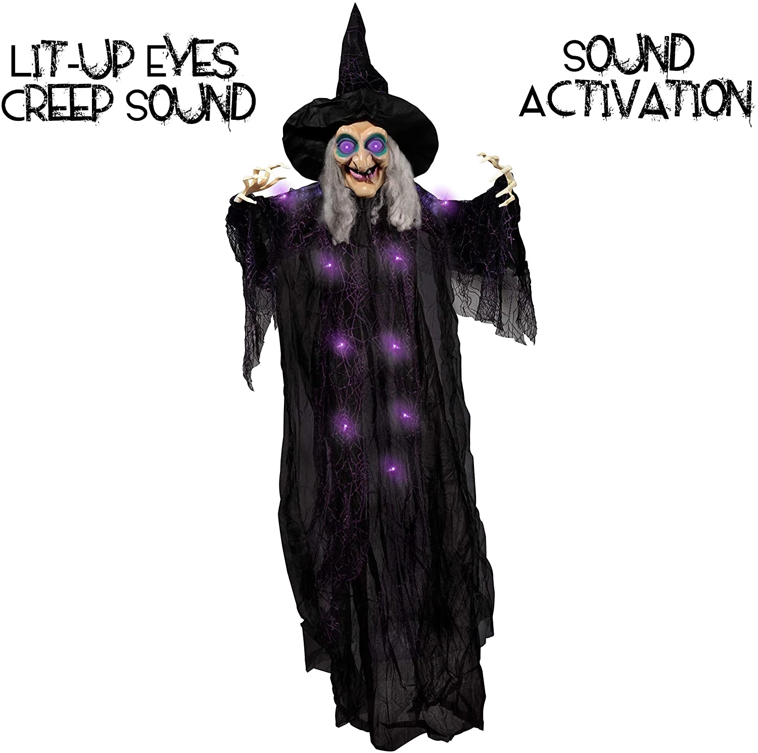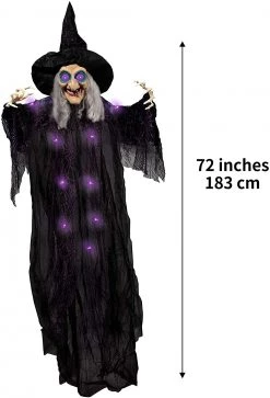 ⢠This 72â large light-up talking witch makes it easy to be noticed, provides this real scary feeling at outdoor lawn and many other horrific theme parties