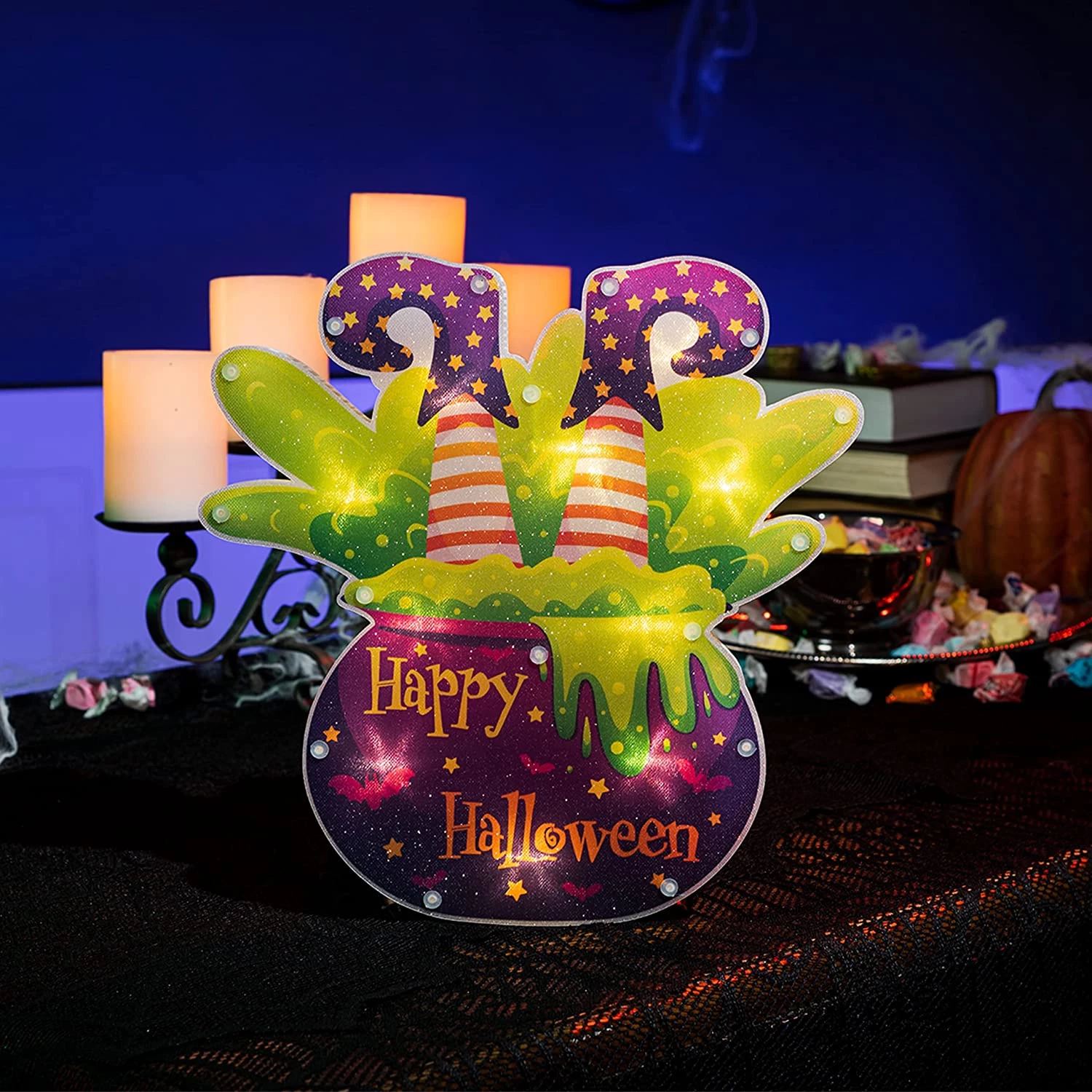 - Our Lighted Witch Legs Cauldron Window Silhouette measures 12x12inch.