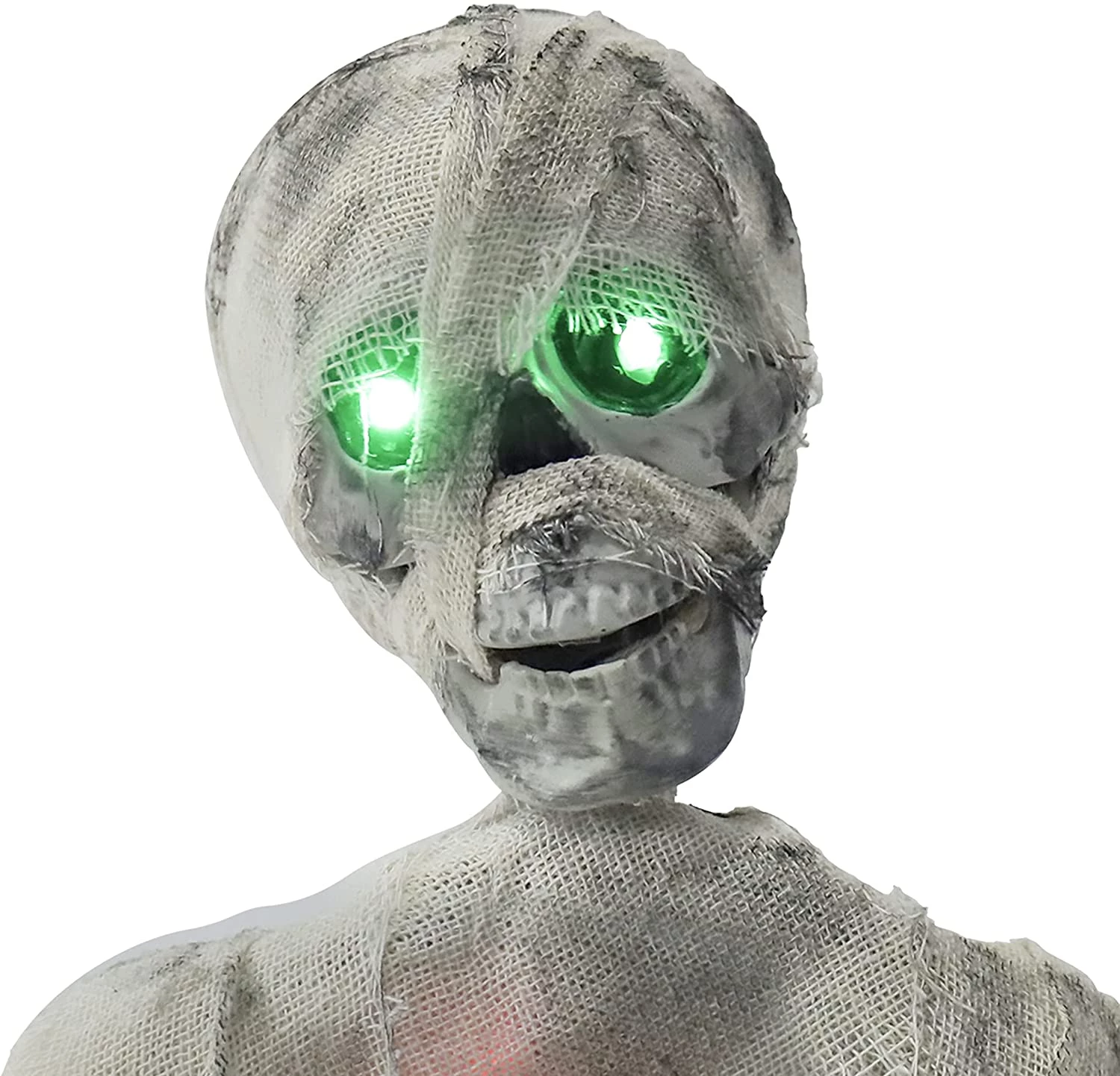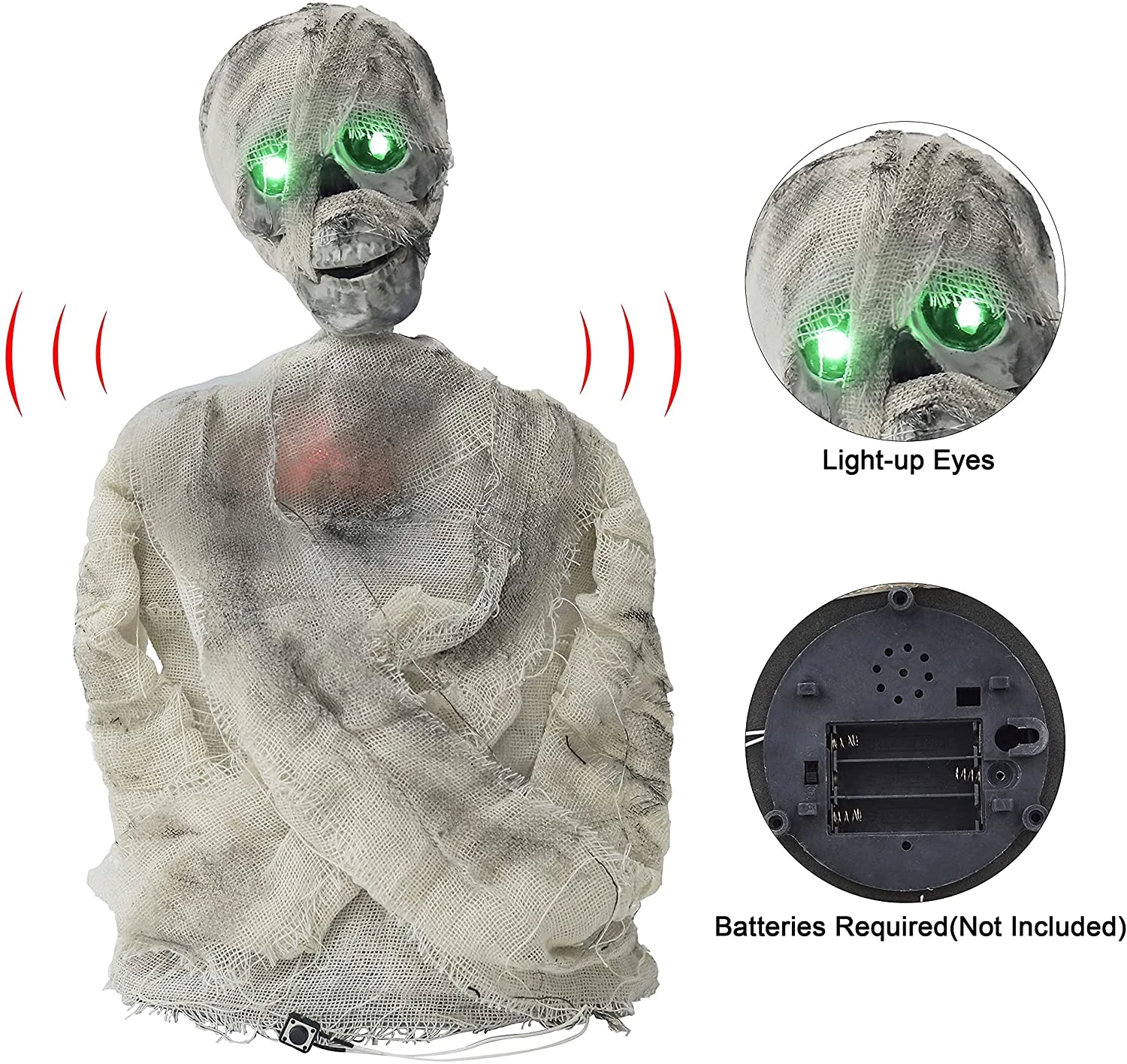 - Its height measures 14” and the width is 9′. This has flashing green eyes, the body flashes red, with the sound of evil spirits cursing, the body is twisted, and emits voice control.