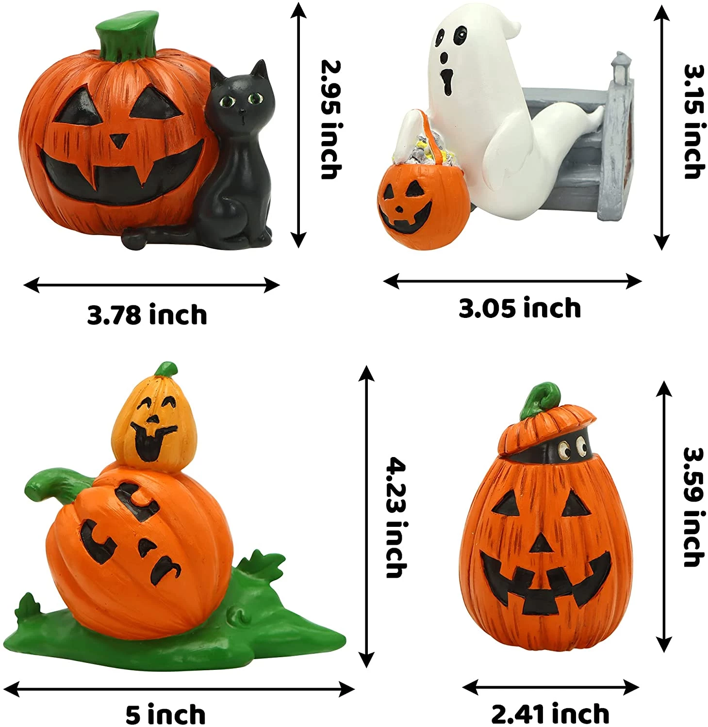 - SUPER VALUE. Our Halloween decor set includes a resin black cats, pumpkins, and ghosts. These adorable ghost figurines are the perfect mini figures to spruce up your decor. The perfect size for the mantle, outdoor garden.