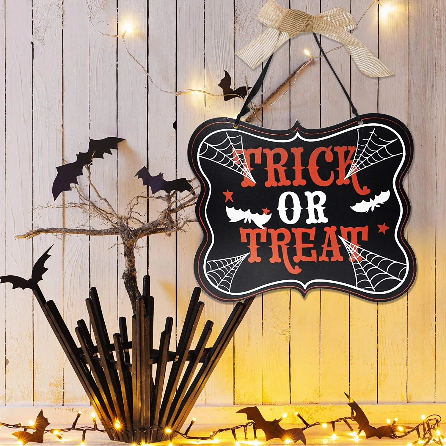 - Our Halloween spooky door design includes 2 unique designs, a flipper board sign with ribbon.